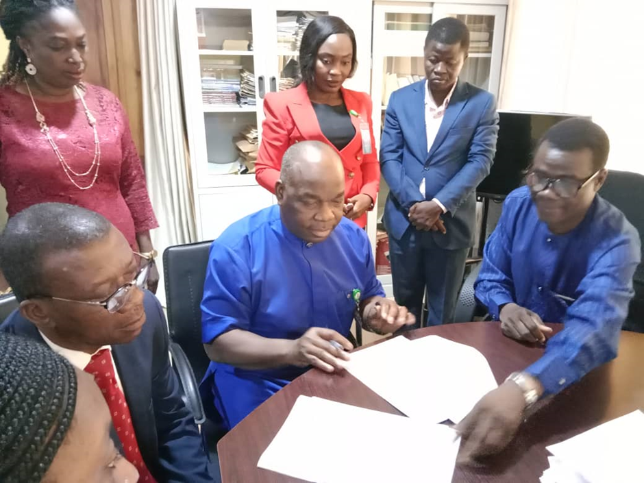 The Executive Director, CMIPD signing a Memorandum of Understanding with UNIOSUN Teaching Hospital, Osun State. July, 2022.